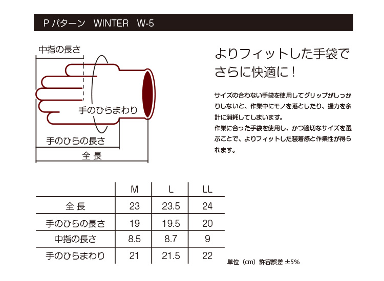 全て> 一般向け商品 > Glove > WINTER GLOVE >PパターンWINTER W-5